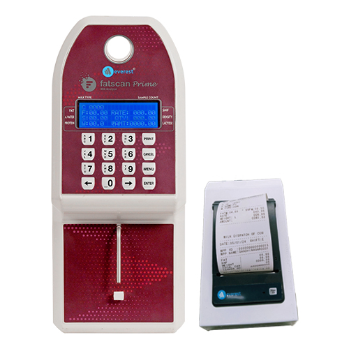 Fatscan Prime is our latest innovation designed for milk collection centers. The device seamlessly integrates with the latest technology such as mobile applications, OTP-based security, 4G & WiFi. It is a combination of three different machines a Data Processor Unit, a Weighing Scale Indicator, and Milk Analyzer. Its compact, portable, and lightweight design makes it a perfect solution for automatic milk collection at VLCC, MCC, and BMC, ensuring efficient and smooth operations.
